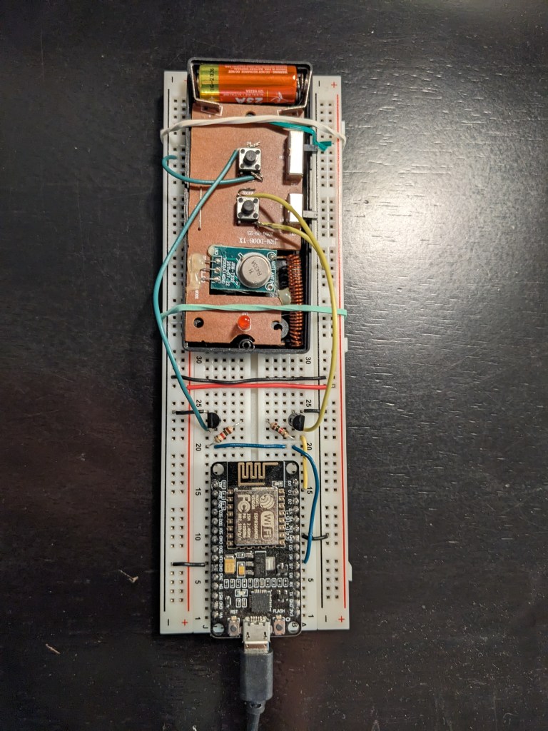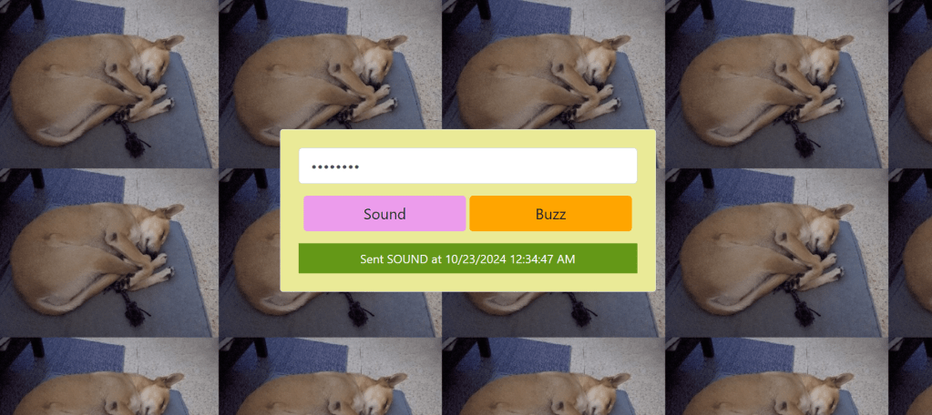 The motivation is that this remote collar is a useful tool for dog training. We can train our dog so that the sound means “go to your bed” and the buzz means “stop barking”. However, we also want to be able to use this when we are out of the house. We spy on our dog using a home camera, and if she is barking or pacing at the door, we want to be able to activate these controls so she knows to calm down. This is important since if left unchecked, the frantic behaviour can lead to excessive howling and biting at the door. Note that this isn’t a shock/e-collar. Those have more specific training methods, and the risk of something going wrong with the circuit is too high.