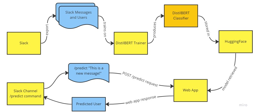 - Training a BERT-based model using this message history to predict the user based on the message text